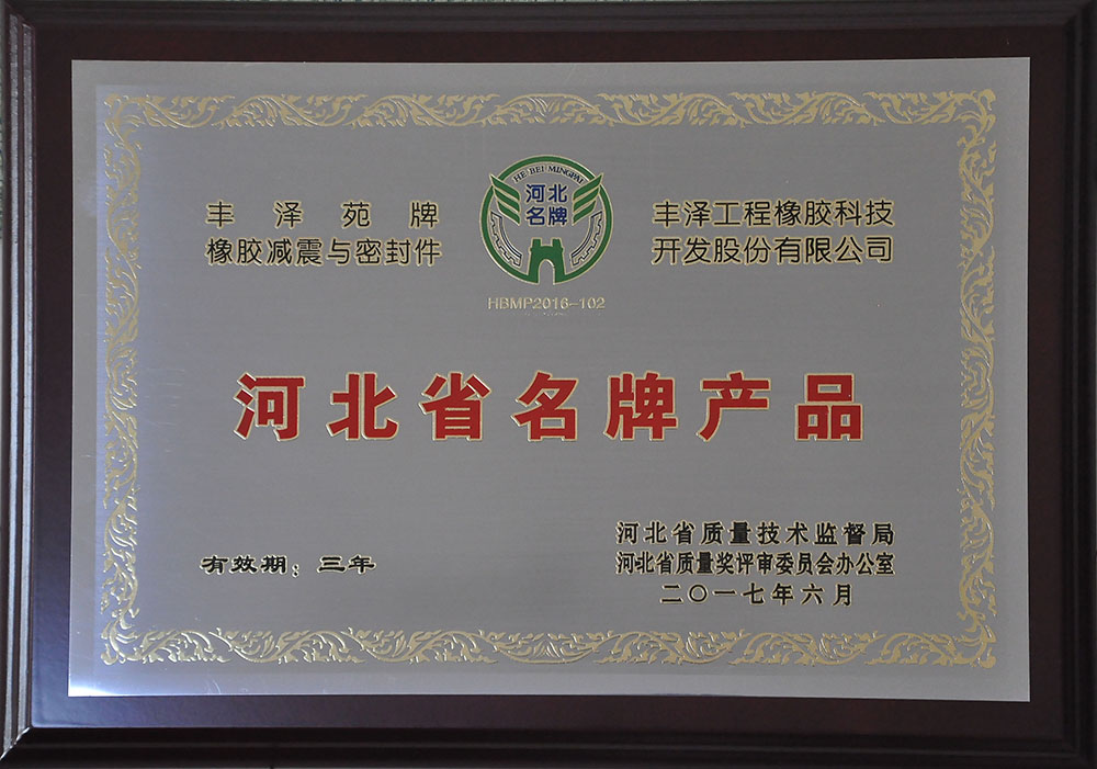 河北省名牌产品、优质产品、质量效益型企业等荣誉由河北省质量奖评审委员会、河北省质量技术监督局主持评定,是省内对产品质量评价的权威荣誉。公司在获得荣誉的同时,也为提升自身形象和品牌知名度、增强市场竞争力和占有率奠定了基础,促进公司不断做大做强,成为工程橡胶行业的领跑者和创新者。