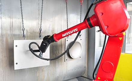 加劲钢板自动喷涂胶粘剂生产线是集自动喷涂技术、辊道式自动搬运技术、自动加热烘干技术为一体的先进智能制造系统,该系统实现了自动调节工件移动速度、自动定位喷涂、自动调节喷枪移动速度、自动测量和调节烘干房温度。