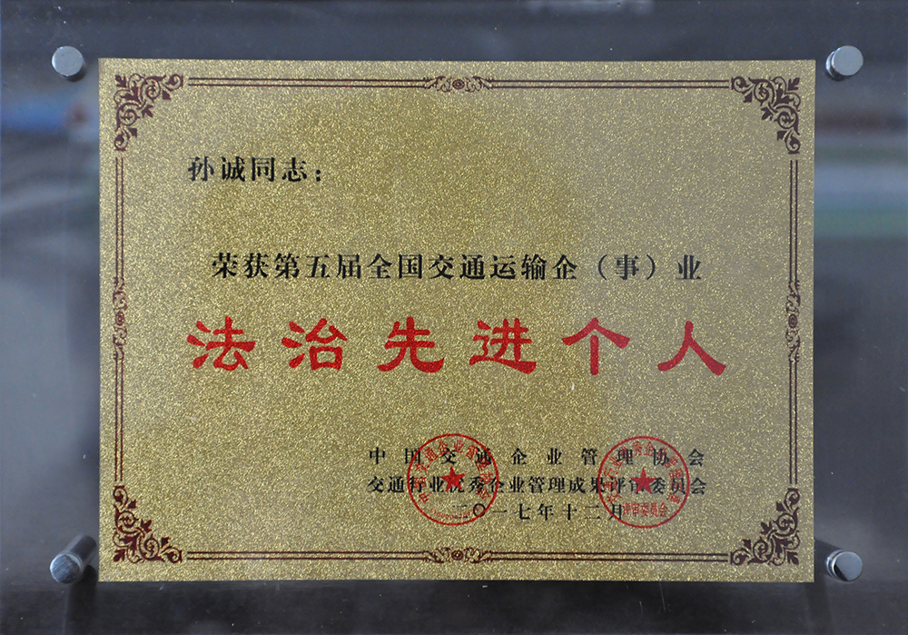 大会对“第五届全国交通运输企(事)业法治先进单位和个人”进行了表彰并颁发铭牌和证书,共计评出法治先进单位51个,法治先进个人34名。其中,丰泽股份被评为“法制先进单位”,丰泽股份董事长孙诚被授予“法制先进个人”称号。