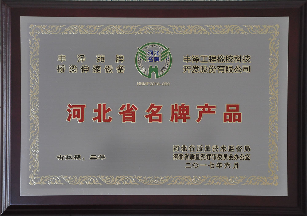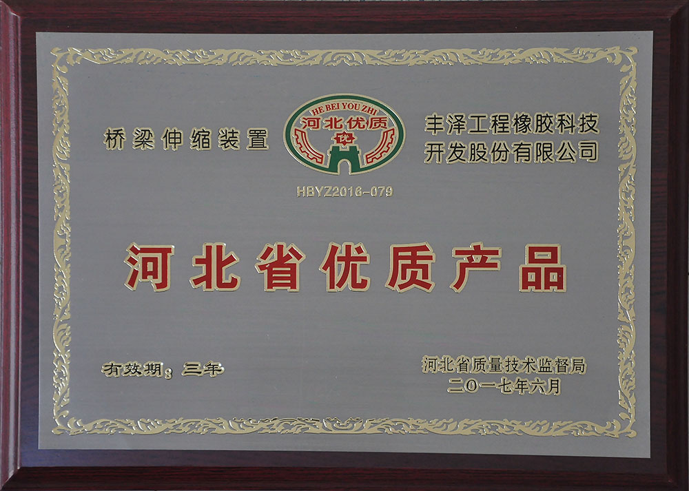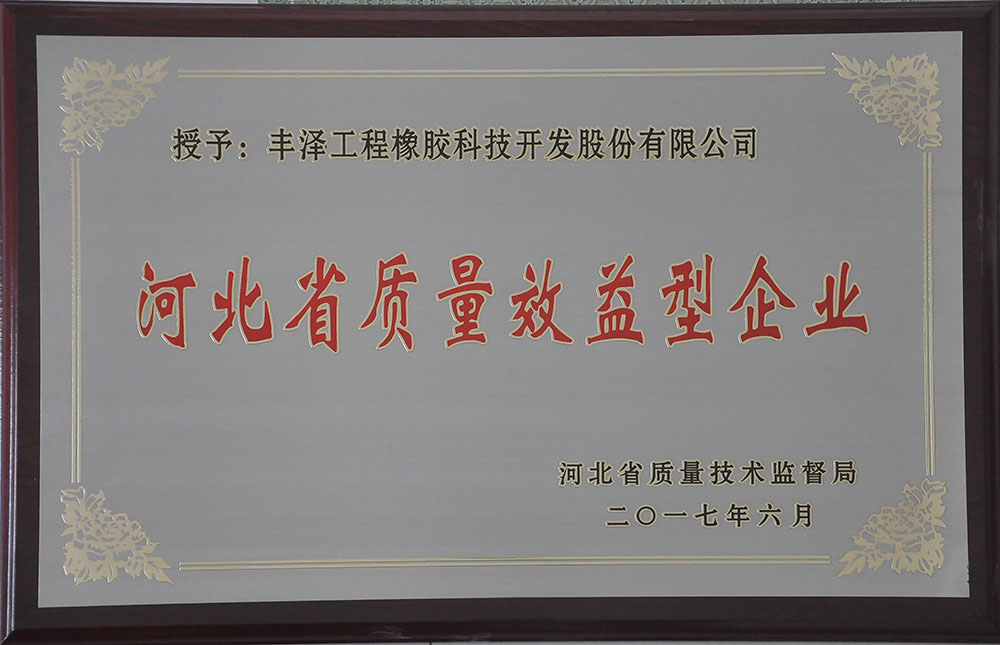 河北省名牌产品、优质产品、质量效益型企业等荣誉由河北省质量奖评审委员会、河北省质量技术监督局主持评定,是省内对产品质量评价的权威荣誉。公司在获得荣誉的同时,也为提升自身形象和品牌知名度、增强市场竞争力和占有率奠定了基础,促进公司不断做大做强,成为工程橡胶行业的领跑者和创新者。