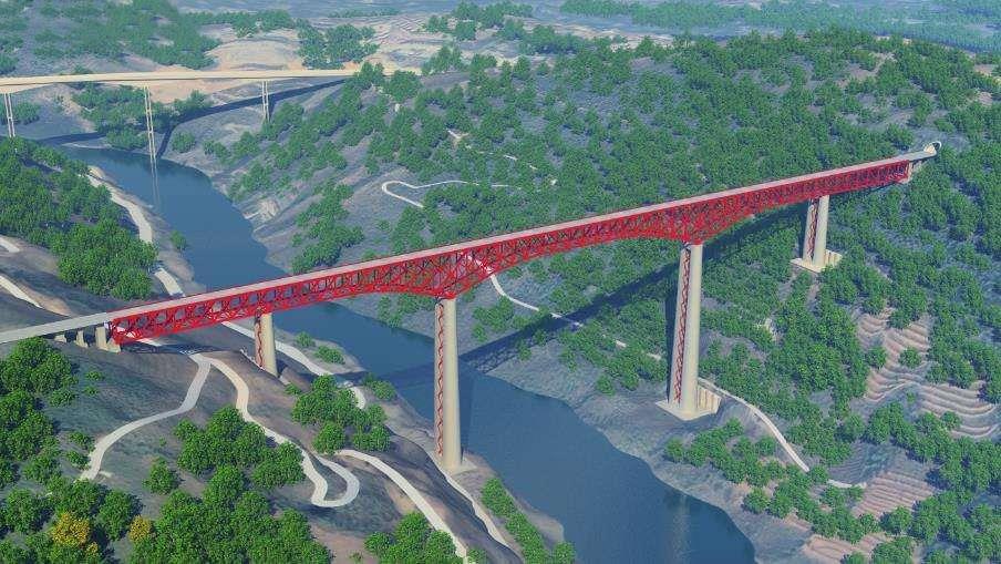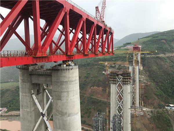 玉磨铁路元江特大桥也称玉磨铁路元江双线特大桥,位于云南省元江哈尼族彝族傣族自治县境内,是我国首次建造的大跨度上承式连续钢桁梁铁路桥,大桥全长832.2米。其中,最高的3号桥墩高154米,相当于54层楼的高度,为世界同类桥梁最高墩。100000KN球型支座便是支撑桥梁的“中流砥柱”。