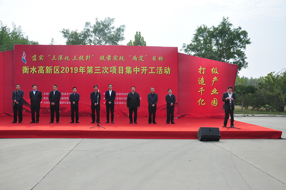 10月9日上午,衡水高新区举行了2019年第三次项目集中开工活动,衡水高新区管委会主任姚幸福在开工活动讲话,衡水市委常委、常务副市长王伟宣布项目开工。