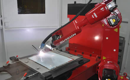 生产线由自动清洗单元、自动焊接单元、自动喷涂单元、自动柔性装配单元和自动监控单元四部分组成,该生产线安装了国内先进的环保处理设备,有机废气能够实现达标排放,与传统生产方式相比具有生产工艺先进、产品质量等级一致、自动化程度高、生产效率高、节能减排、绿色环保等特点,大幅度降低了工人的劳动强度,改善了工人的作业环境。该生产线由我公司和中国航空工业集团公司北京航空制造工程研究院共同开发设计,填补了国内外桥梁工程装置领域外金属支座自动化生产技术的空白,自动化程度和技术性能达到国际先进水平。该生产线采用了国内先进的余热回收技术、有机废气光氧处理技术以及除尘技术,与原有生产方式相比,可节约能源30%以上,达到了节能减排、绿色环保的效果。生产线采用了机器人自动焊接、打磨及喷漆技术,新的生产方式改善了工人的作业环境,降低工人劳动强度,减少了职业病的发生。
