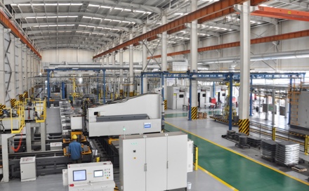叠层橡胶支座自动化柔性生产线自动化程度高、柔性好、生产效率高,使工人脱离了高温、污染的环境,降低劳动强度和职业病伤害。该生产线由丰泽股份和中国航空制造技术研究院共同开发设计,填补了国内外桥梁工程装置领域橡胶支座自动化生产技术的空白,自动化程度和技术性能达到国际先进水平。